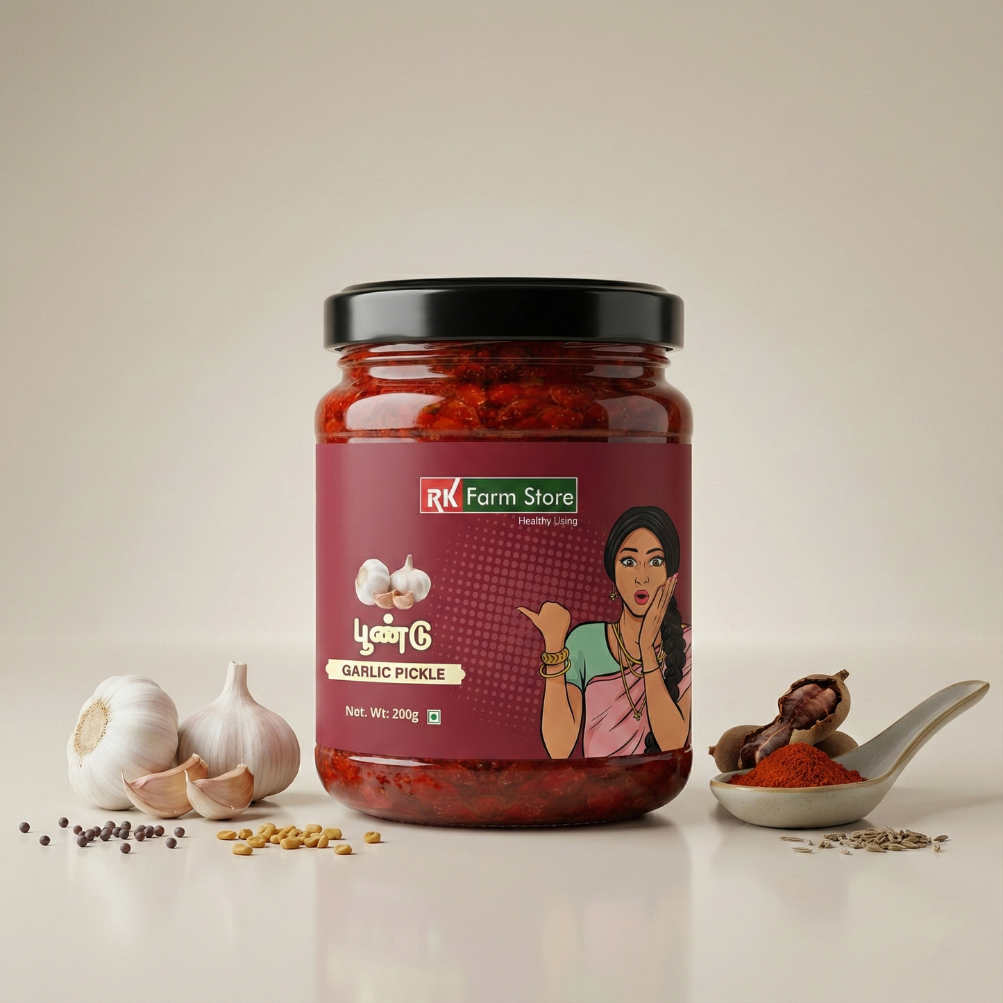 Garlic aids in digestion and is filled with health benefits. Made with good quality gingelly oil, this pickle is made using a traditional recipe and is sure to become your household favorite.