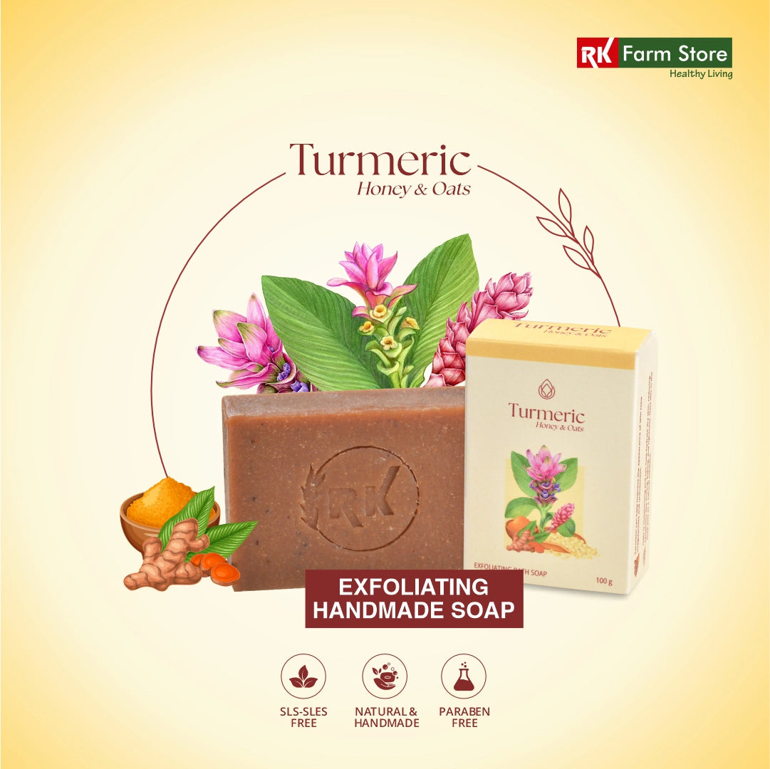 RK Farm Store’s Turmeric, Honey and Oats soap is a complete skin care product. Turmeric can help improve the appearance of skin tone irregularities and unevenness. Oats are moisturising and can help hydrate dry skin, reducing symptoms like itching, flaking and tightness. Oats bits in the soap acts as a natural exfoliant.
