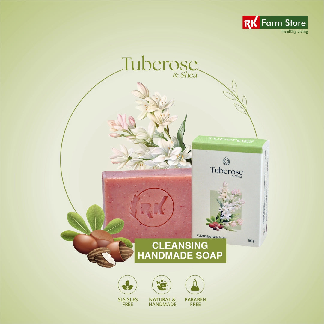 RK Farm Store’s Tuberose and Shea soap is wonderfully luxurious in its ability to moisturize and repair skin and oxidative damage caused by pollutants and harsh sunlight. Shea is known for its ability to deep conditioning and repair damage to the skin barrier while tuberose is a wonderful mild fragrance often loved in skincare.